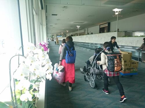 1日目(15日)。朝6時20分頃、自宅を出発。岡山空港から那覇空港へ。 今回は、私と相方、末の妹さん、めいっこさん、そして1週間まるまる同行してくれたヘルパーさん、さらに京都の友人と、6人でのスタート。これだけ人手がいると、かなり負担は分散…